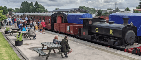 Bienvenue au Caledonian Railway. Nous sommes une association caritative entièrement gérée par des bénévoles (SC012714) qui restaure, entretient et exploite un chemin de fer patrimonial situé au cœur de l'Angus, en Écosse. Nous faisons circuler des trains à vapeur et diesel sur la ligne secondaire de 4 miles entre la ville de Brechin et l'arrêt de campagne de Bridge of Dun, qui date de 1848.