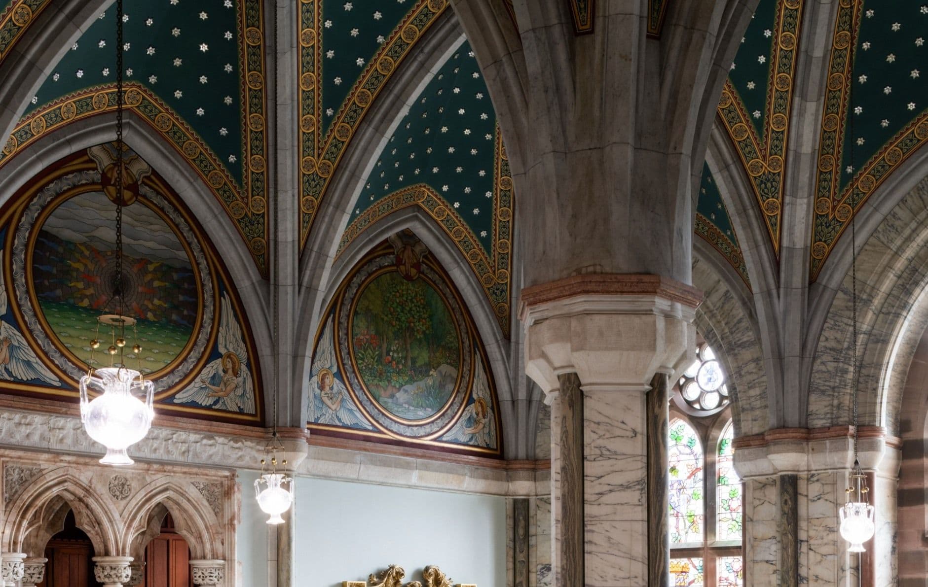 À l'intérieur, le design inspiré par l'astrologie, l'art et la mythologie éblouit. Le plafond de la salle de marbre est orné d'une carte des étoiles. Empruntez l'escalier en colimaçon qui mène à ce que l'on croit être la première piscine chauffée au monde. Cette maison regorge d'innovations, du premier système téléphonique à l'ascenseur victorien.